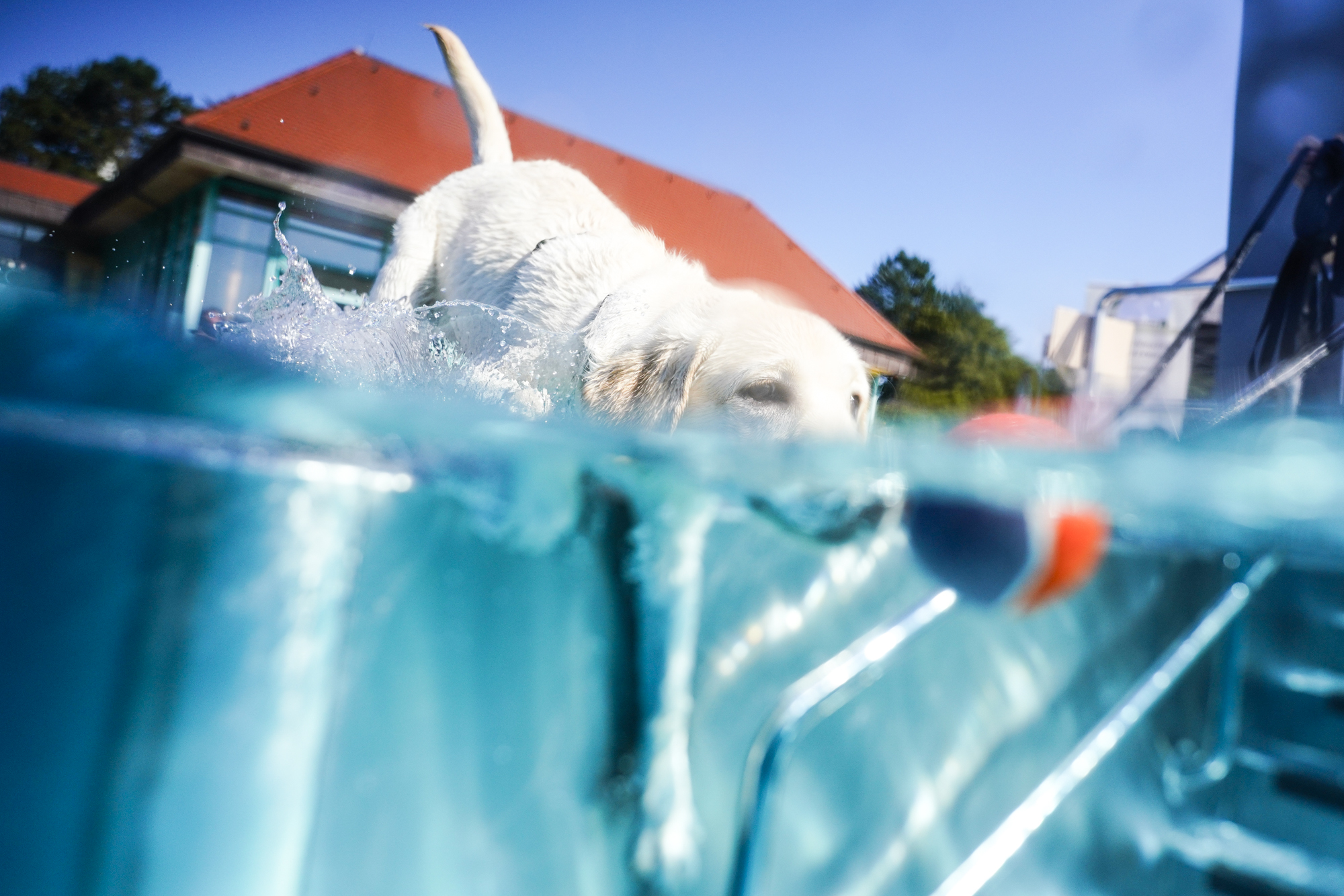 Wir fangen die magischen Momente ein, wenn dein Hund das Wasser liebt und es in vollen Zügen genießt. Ob er kraftvoll durch die Wellen schwimmt oder geschickt unter Wasser taucht – wir halten jeden Augenblick in einzigartigen Fotos fest. Unsere professionelle Hundefotografie bietet dynamische Aufnahmen sowohl über als auch unter Wasser. So entstehen authentische und eindrucksvolle Erinnerungen, die die Persönlichkeit deines Hundes perfekt einfangen. Hier findet ihr unsere Freibäder, in denen wir als Fotografen vor Ort sind. Unten bekommt ihr einen kleinen Einblick in unsere Arbeit.